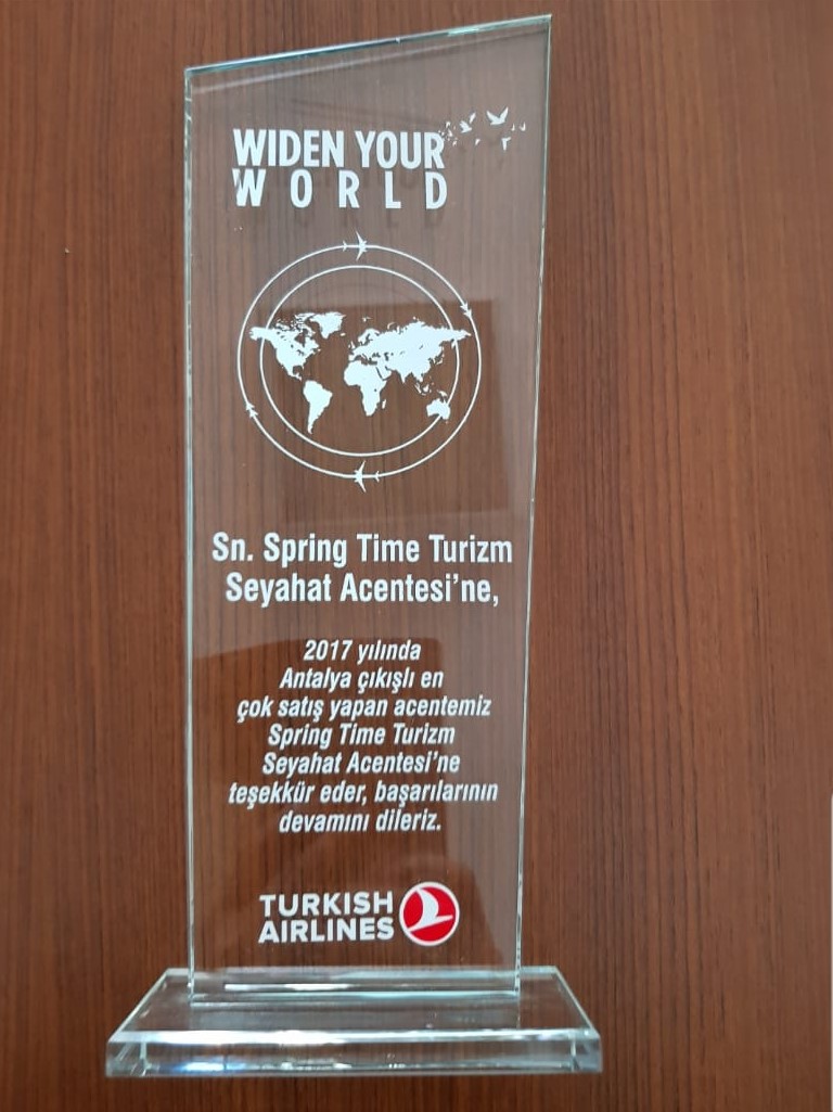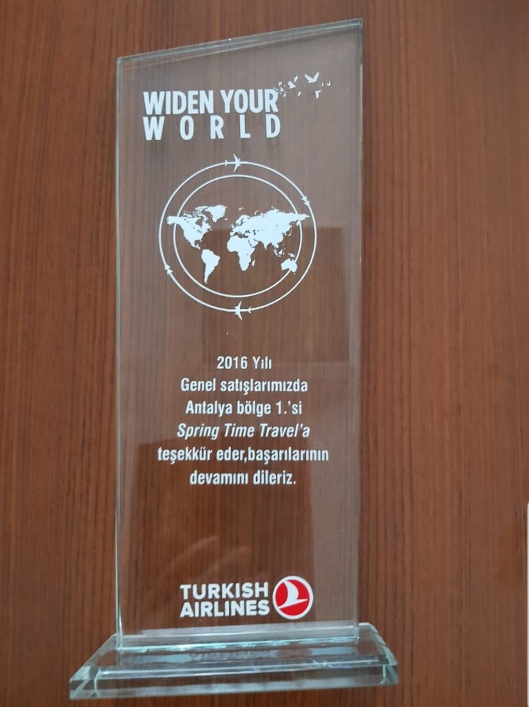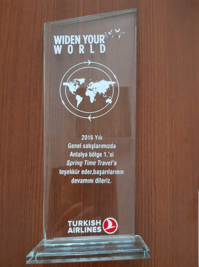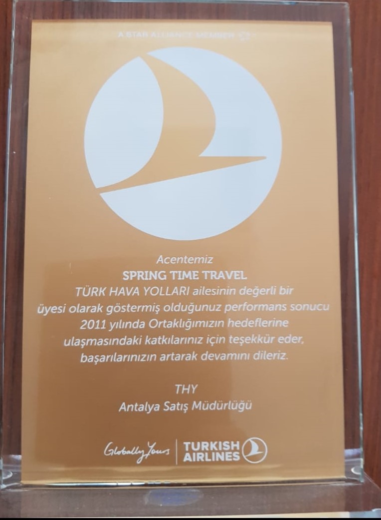 Teknik altyapı ve ekip gücünü kullanarak piyasadaki yerini kanıtlamış olan acentamız; 2010 yılından itibaren 10 yıldır THY tarafından Antalya Bölge 1.si seçilerek Antalya'nın en iyi seyahat organizasyonu yapan firmaları arasında yer almış olup; sizlere hizmet vermeye devam etmektedir.